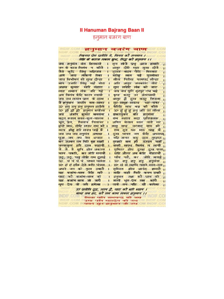 Hanuman Baan Pdf : Report hanuman bajrang baan path. Hanuman Baan Pdf : Stotra of hanuman,the great devotee of lord rama, in this pdf will be downloaded.